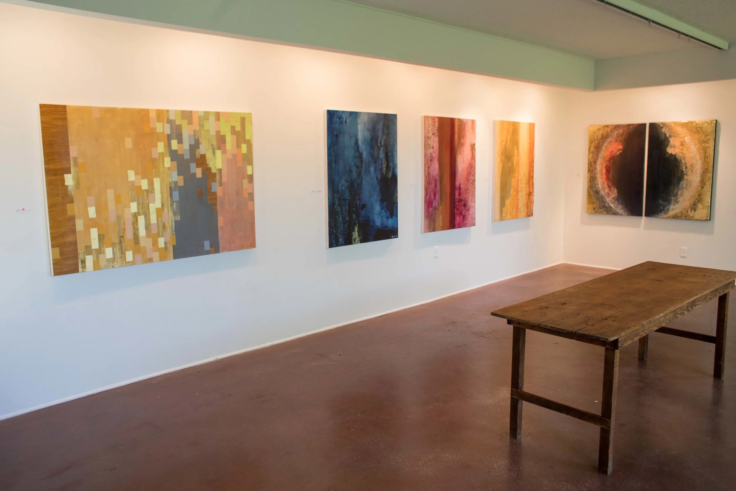 As I began to paint, I decided to plunge into the darkness to await the morning light of day. These paintings are the embodiment of deep emotions that cannot be adequately expressed with words. The body of work wrestles with loss and the tension of promises that seem veiled. It also expresses the experience of sorrow and joy living simultaneously within, as well as the beauty to be found in the glorious nature of God, symbolized throughout by elements of gold. Bright, saturated colors to pale pastels carry the intensity of emotion and the continual hope for the rising sun. Though this process has been intensely challenging, I am grateful to be able to share my journey with you through this body of work. The sun is rising, and the darkness receding. I have been carried to the House of Morning.